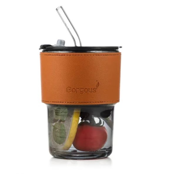 كوب زجاجي مع قشه زجاجيه مناسب للمشروبات الباردة و التنقل