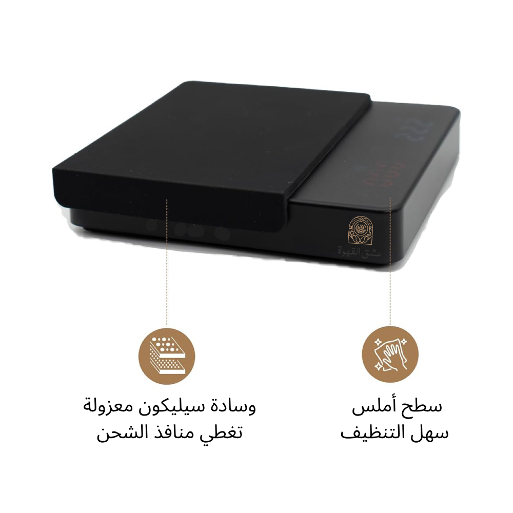 ارتقِ بتجربتك في تحضير القهوة مع ميزان قهوة إلكتروني قابل الشحن من عشق القهوة المختصة – حيث تلتقي الأدوات المميزة بشغف القهوة الحقيقي.